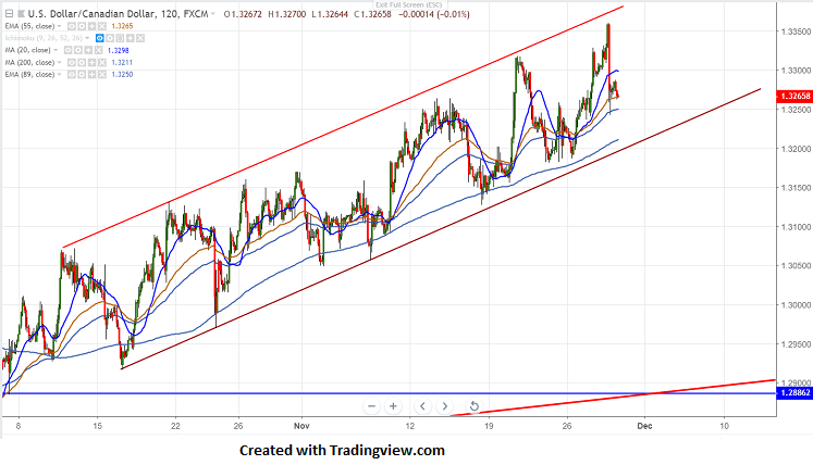 USDCAD has halted its bullish run after a three days continuous upside. The pair hits 5- month high at 1.3359 and shown a massive sell-off after Fed Powell speech. Loonie hits low of 1.32422 and is currently trading around 1.326750.