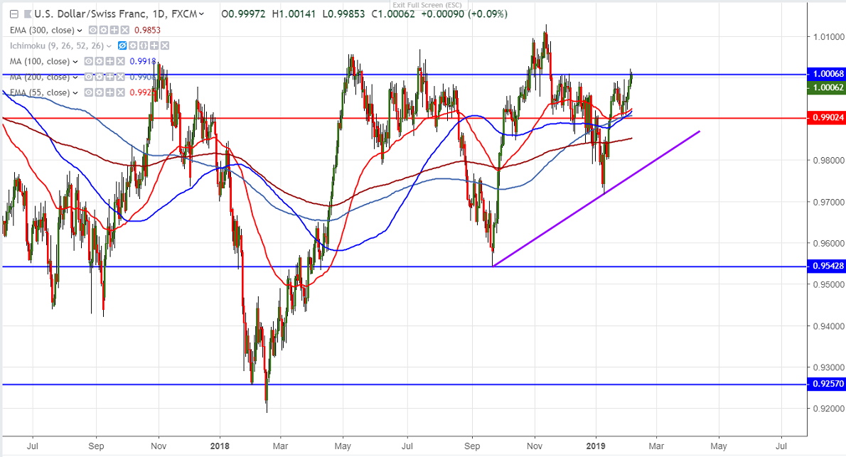 USDCHF is trading higher for 5th consecutive day and jumped till 1.0020 highest level till mid Nov. DXY has rebounded sharply more than 100 pips after better than expected US Non farm payroll data. But US and China trade talks and Brexit uncertainty are major factors which are expected to increase demand for safe haven.The pair hits intraday high 1.00141 and is currently trading around 0.99839.