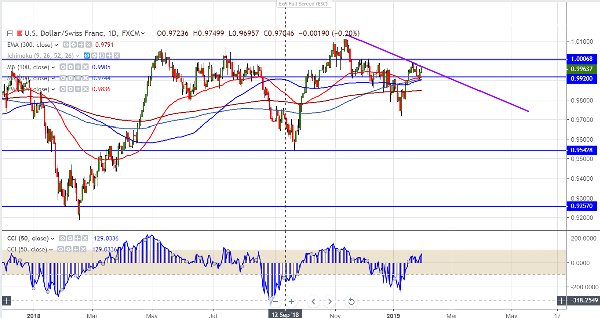 USD/CHF has shown a good recovery above 0.9950 and hits intraday high of 0.99677. The minor recovery was mainly due to slight jump in global stock market. But overall trend is still uncertain and depends on today’s US Fed meeting and US-China trade talks. The pair is currently trading around 0.99598.