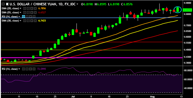 We prefer to take long position on USD/CNY only above 6.8620, stop loss 6.8190 and target of 6.8934.