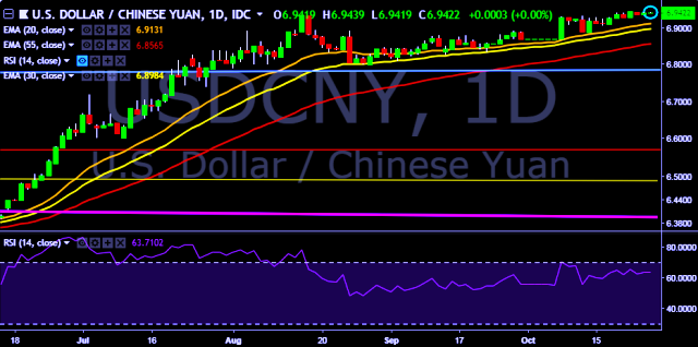 We prefer to take long position on USD/CNY only above 6.9450, stop loss 6.9210 and target of 6.9620/6.9748.