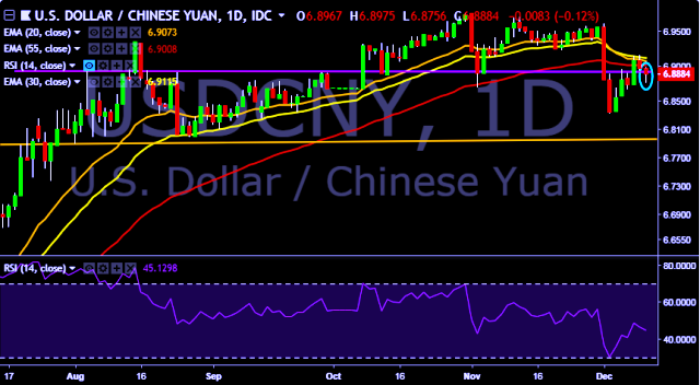 We prefer to take long position on USD/CNY only above 6.8975, stop loss at 6.8750 and target of 6.9210.