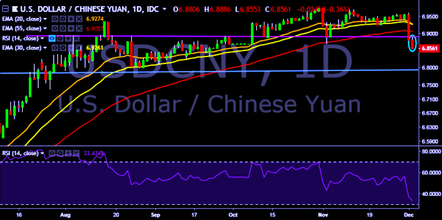We prefer to take short position on USD/CNYaround 6.8710, stop loss at 8.89 and target of 6.8420/6.8215.