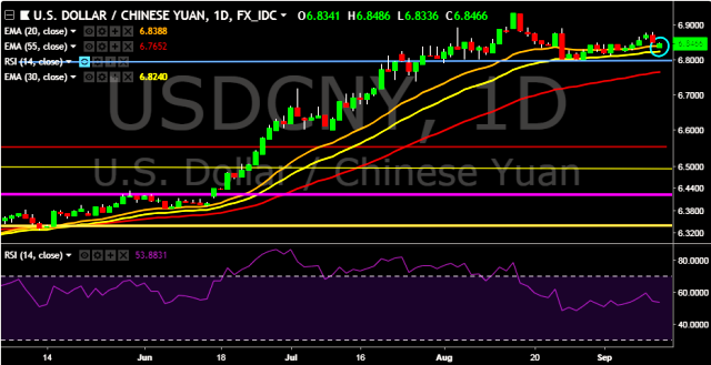 We prefer to take long position on USD/CNY around 6.8450, stop loss at 6.8300 and target of 6.8792.
