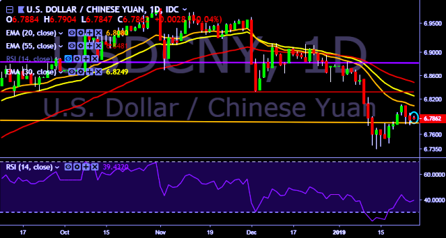 We prefer to take short position on USD/CNY around 6.7820, stop loss at 6.7970 and target of 6.7590/6.7422.