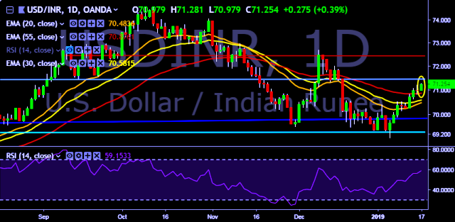 We prefer to take long position on USD/INR around 71.20, stop loss at 70.97 and target of 71.48.