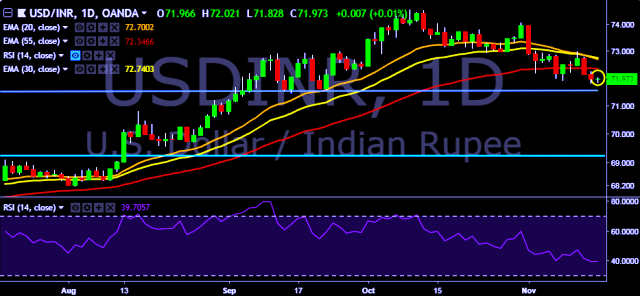 We prefer to take short position on USD/INR around 72.00, stop loss at 72.25 and target of 71.33 mark.