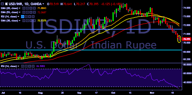 We prefer to take short position on USD/INR around 70.50, stop loss at 70.90 and target of 69.69 mark.