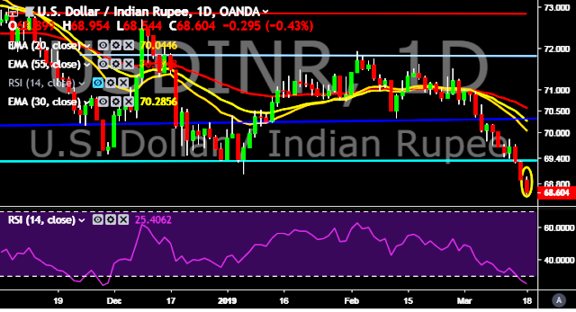 - USD/INR is currently trading around 68.61 marks.