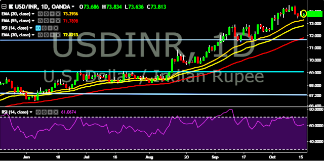 We prefer to take long position on USD/INR only above 74.02, stop loss at 73.60 and target of 74.52.