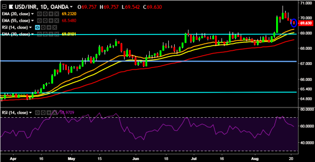 - Key resistances are seen at 69.90, 70.20, 70.38, 70.56, 70.80 and 71.24 marks respectively.