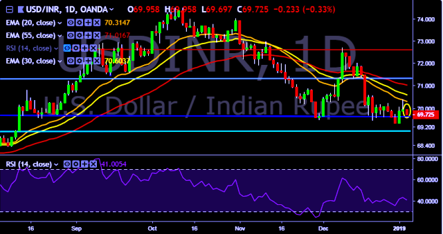 We prefer to take short position on USD/INR around 69.75, stop loss at 70.57 and target of 69.02.