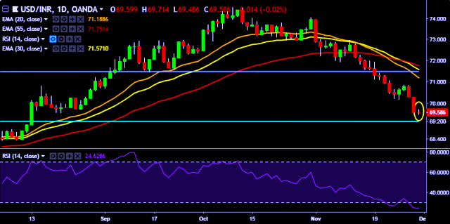 - Key resistances are seen at 69.90, 70.08, 70.28, 70.64, 70.80, 71.05, 71.40, 72.02, 72.24, 72.50 and 72.86 marks respectively.