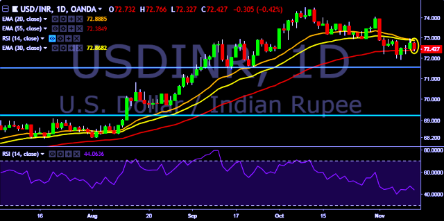 - USD/INR is currently trading around 72.42 marks.