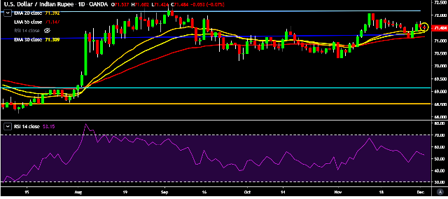 - It made intraday high at 71.60 and low at 71.42 marks.