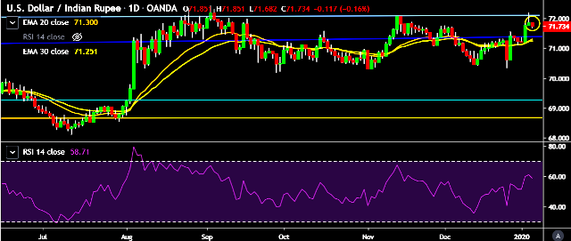 - It made intraday high at 71.85 and low at 71.68 marks.