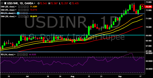 - It made intraday high at 72.58 and low at 72.35 marks.