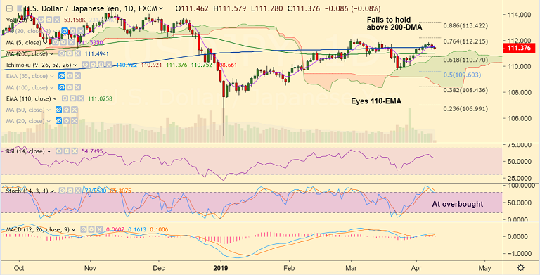 Currency Forecasts: Scope for dip till 111, break below 110-EMA to see further weakness.