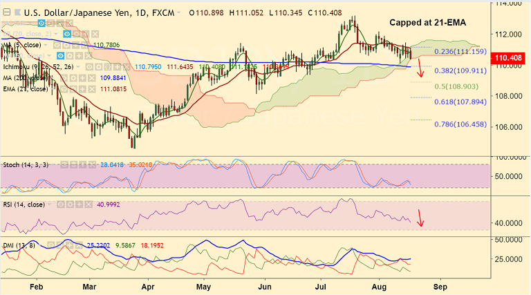 Resistance levels - 110.77 (5-DMA), 111.08 (21-EMA), 111.43 (Aug 15 high)