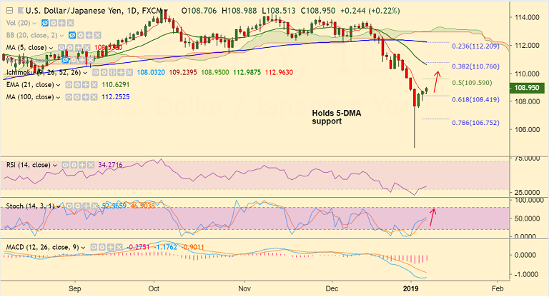 Recommendation: Good to go long on upticks at 108.85/90, SL: 108.50, TP: 109.45/ 109.60/ 110