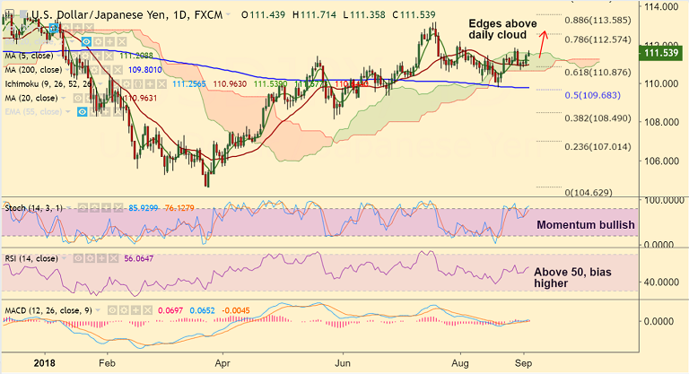 Support levels - 111.20 (5-DMA), 110.87 (61.8% Fib), 110.64 (cloud base)