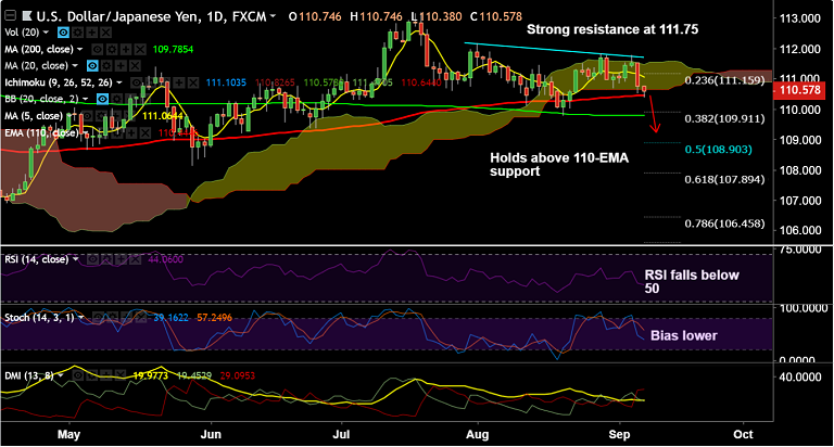 Support levels - 110.44 (110-EMA), 110, 109.91 (38.2% Fib), 109.78 (200-DMA)