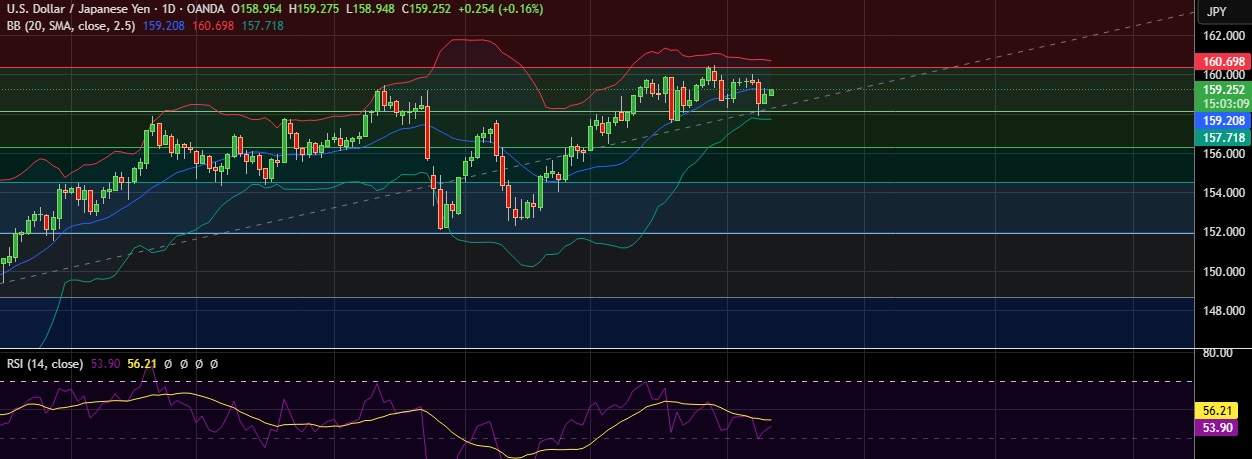 FxWirePro: USD/JPY steadies around 158.75, bias bullish