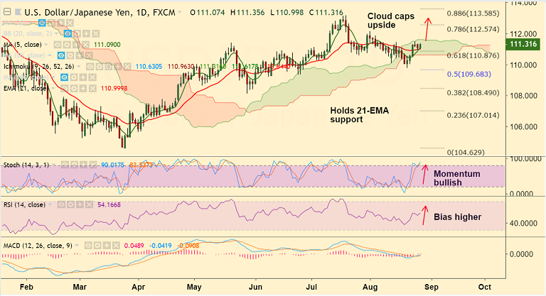 - USD/JPY holds above 21-EMA, intraday bias bullish.