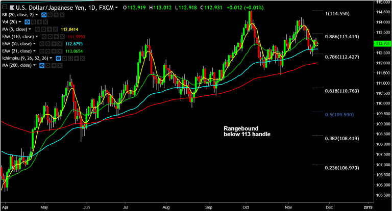 - The pair is capped below 113 handle and is currently trading at 112.90, down 0.01% on the day.