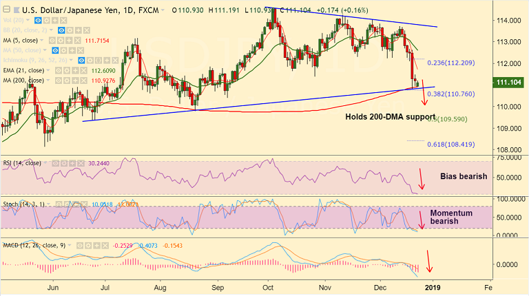 Support levels - 110.92 (200-DMA), 110.30 (Lower BB), 109.59 (50% Fib)