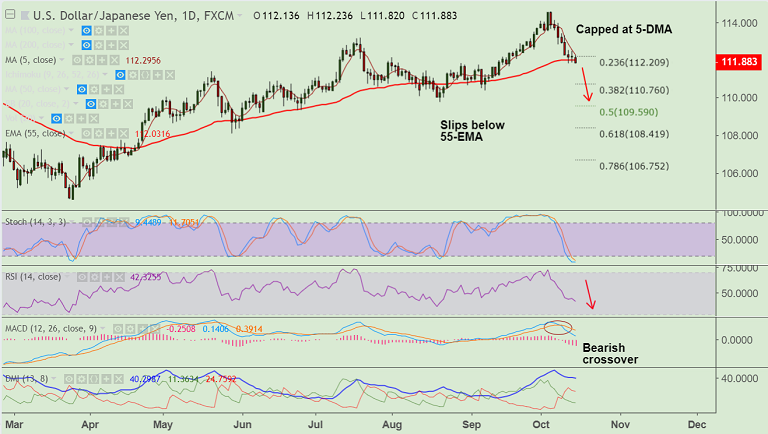 Recommendation: Stay short below 55-EMA, SL: 112.30, TP: 111.55/ 111/ 110.76