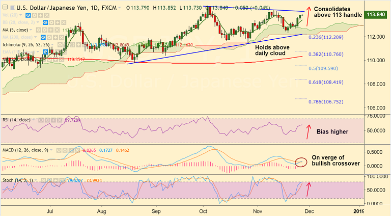 Support levels - 113.41 (5-DMA), 113.23 (21-EMA), 112.78 (55-EMA)
