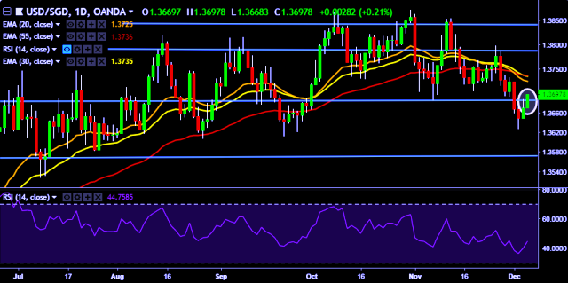 We prefer to take long position on USD/SGD only above 1.3702, stop loss at 1.3665 and target of 1.3738/1.3770.