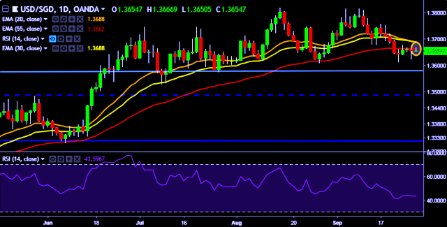 We prefer to take long position on USD/SGD only above 1.3690, stop loss at 1.3638 and target of 1.3780.