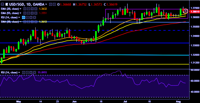We prefer to take long position on USD/SGD only above 1.3692, stop loss at 1.3652 and target of 1.3745/1.3788.