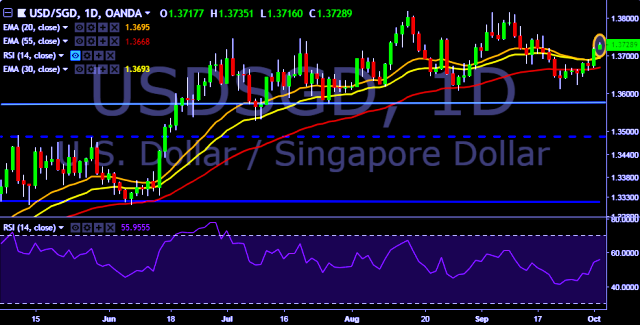 We prefer to take long position on USD/SGD around 1.3720, stop loss at 1.3690 and target of 1.3780.