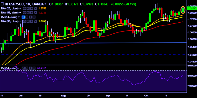 We prefer to take long position on USD/SGD around 1.3815, stop loss at 1.3772 and target of 1.3872.