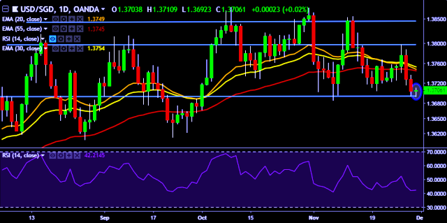We prefer to take short position on USD/SGD around 1.3710, stop loss at 1.3757 and target of 1.3654.