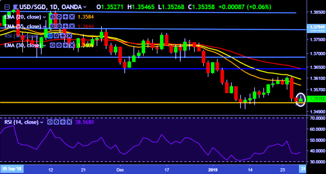 - USD/SGD is currently trading around 1.3535 marks.