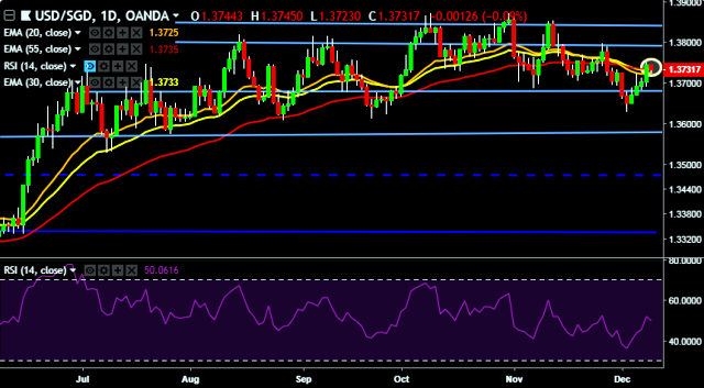 We prefer to take long position on USD/SGD around 1.3715, stop loss at 1.3690 and target of 1.3770.