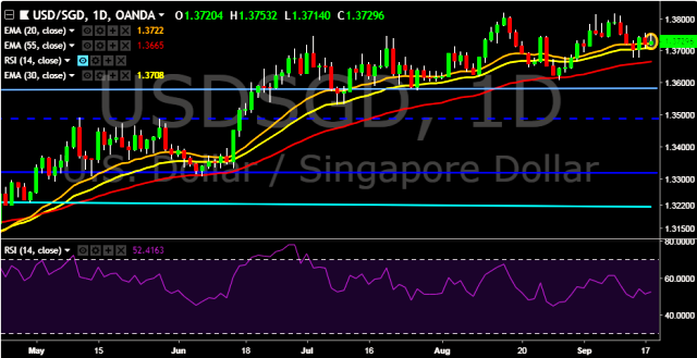 We prefer to take long position on USD/SGD only above 1.3755, stop loss at 1.3690 and target of 1.3780/1.3820.