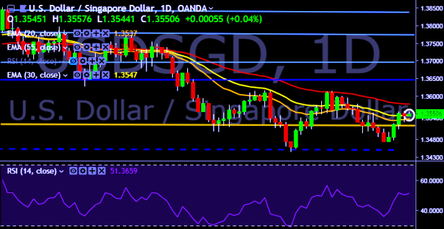 We prefer to take long position on USD/SGD only above 1.3570, stop loss at 1.3520 and target of 1.3615.