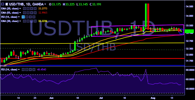 We prefer to take short position on USD/THB around 33.22, stop loss at 33.35 and target of 33.02.