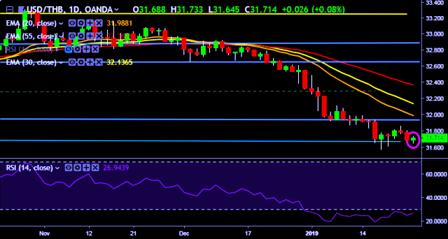 We prefer to take short position on USD/THB around 31.80, stop loss at 31.93 and target of 31.46.