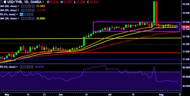 - USD/THB is currently trading around 33.22 marks.