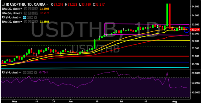 We prefer to take long position on USD/THB around 33.15, stop loss at 33.02 and target of 33.52/33.78.