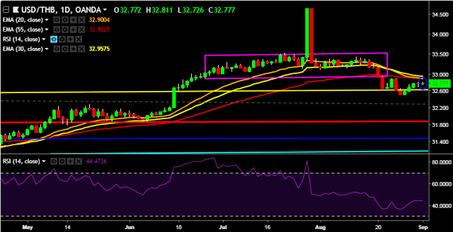 We prefer to take short position n USD/THB only below 32.65, stop loss at 32.90 and target of 32.51/32.18.