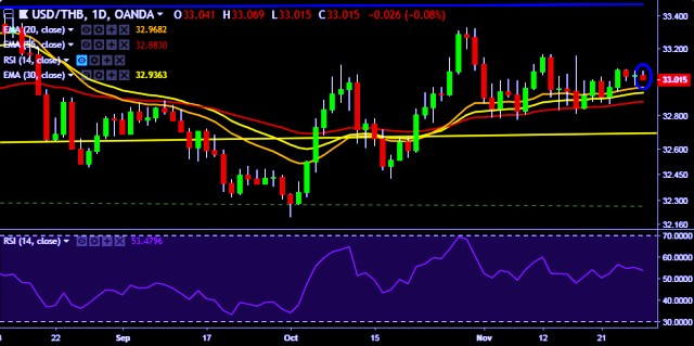 We prefer to take short position on USD/THB only below 32.97, stop loss 33.07 and target of 32.77.
