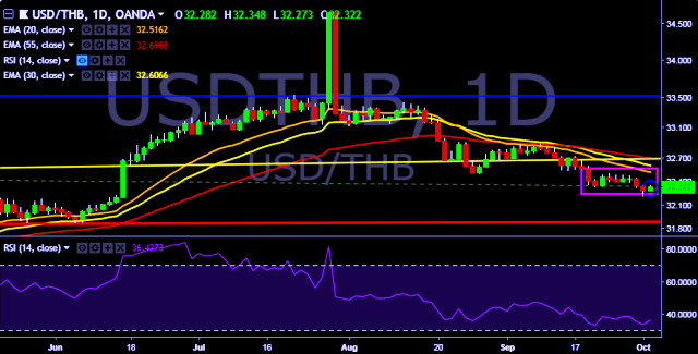 We prefer to take short position on USD/THB only below 32.27, stop loss 32.40 and target of 32.18/32.02 mark.
