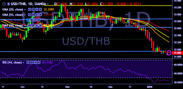 We prefer to take short position on USD/THB around 31.90, stop loss at 32.02 and target of 31.83/31.60/31.24.